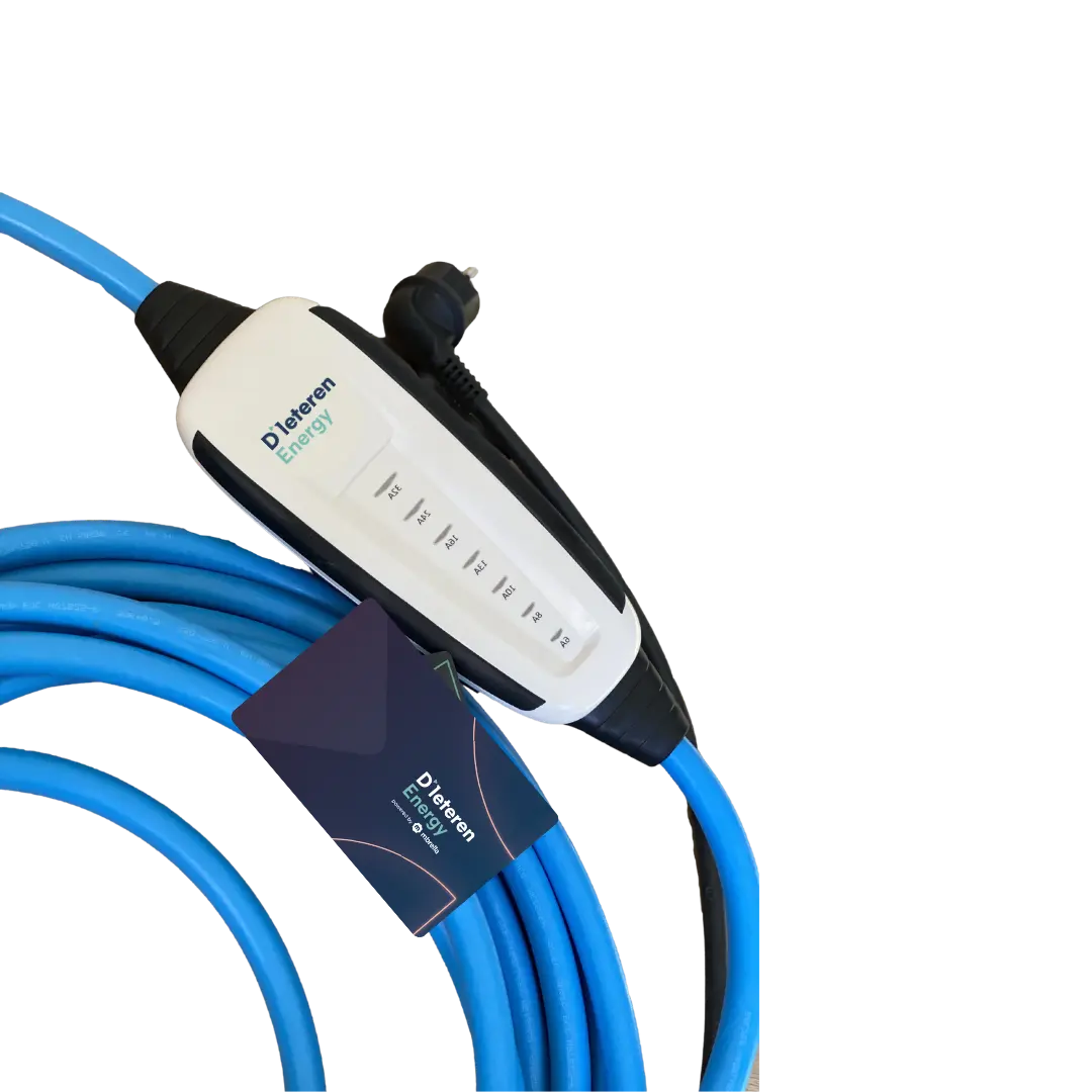 Bij de aankoop van uw Connected Cable ontvangt u gratis een D’Ieteren Energy-laadkaart, waarmee u toegang krijgt tot meer dan 850.000 laadpunten in Europa.