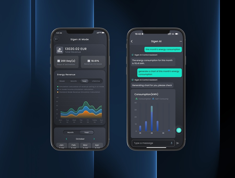 Met de Sigen AI Mode analyseert de app uw verbruikspatronen, zonneproductie, weersvoorspellingen en dynamische tarieven om automatisch de beste energiebeslissingen te nemen en uw besparingen te maximaliseren.​